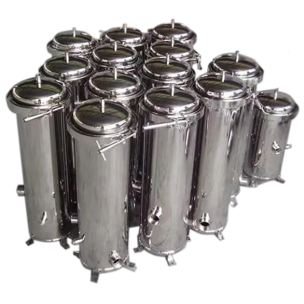 D袋式过滤器一种体积小、操作简便灵活的多用途过滤设备。内部由金属网篮支撑滤袋,液体由入口流进,经滤袋过滤后从出口流出,杂质拦截在滤袋中,更换滤袋后可继续使用。主要应用于:食品、卫生、制药等行业。